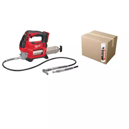 Milwaukee M18 GG-0 rasvapuristin ja 12 tuubia punaista vaseliinia.