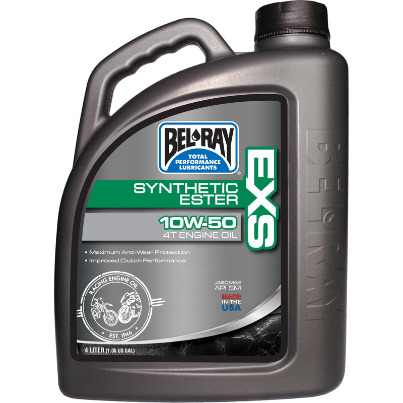 Bel-Ray EXS Full Synthetic Ester 4T Engine Oil 10W-50 1 Litraa. Bel-Ray EXS on täyssynteettistä moottoriöljyä. Öljyssä on käytetty parhaita synteettisiä hiilivetyjä ja esteri pohjaisia perus öljyjä joihin on sekoitettu ainutlaatuisia paineen kestoa lisääviä ja kulumista minimoivia lisäaineita.