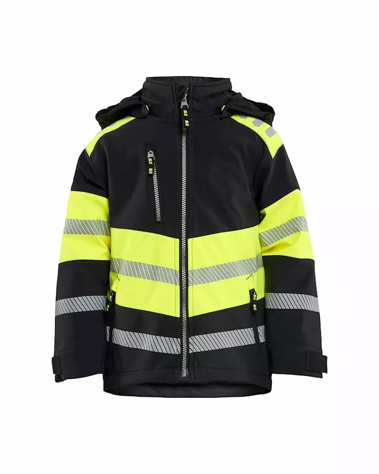 Kevyt softshell-takki lapsille. Takki on erittäin pehmeä, mukava ja joustava materiaalinsa ansiosta. Takki on kaksivärinen, pääosin tummista osista koostuva, mikä tekee siitä erittäin likasuojaavan samalla tarjoten erinomaisen näkyvyyden tarvittaessa. Tämä näkyvyyttä lisäävä takki yhdistää kevyen ja joustavan tunteen kestävän vaatteen vahvuuteen. Lisäksi materiaali on tuulen- ja vedenpitävä sekä erinomaisesti hengittävä. Irrotettava huppu nepparikiinnityksellä.