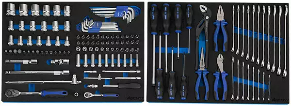 143-Osainen työkalusarja Boxon työkaluvaunuihin sekä muihin kalusteisiin.