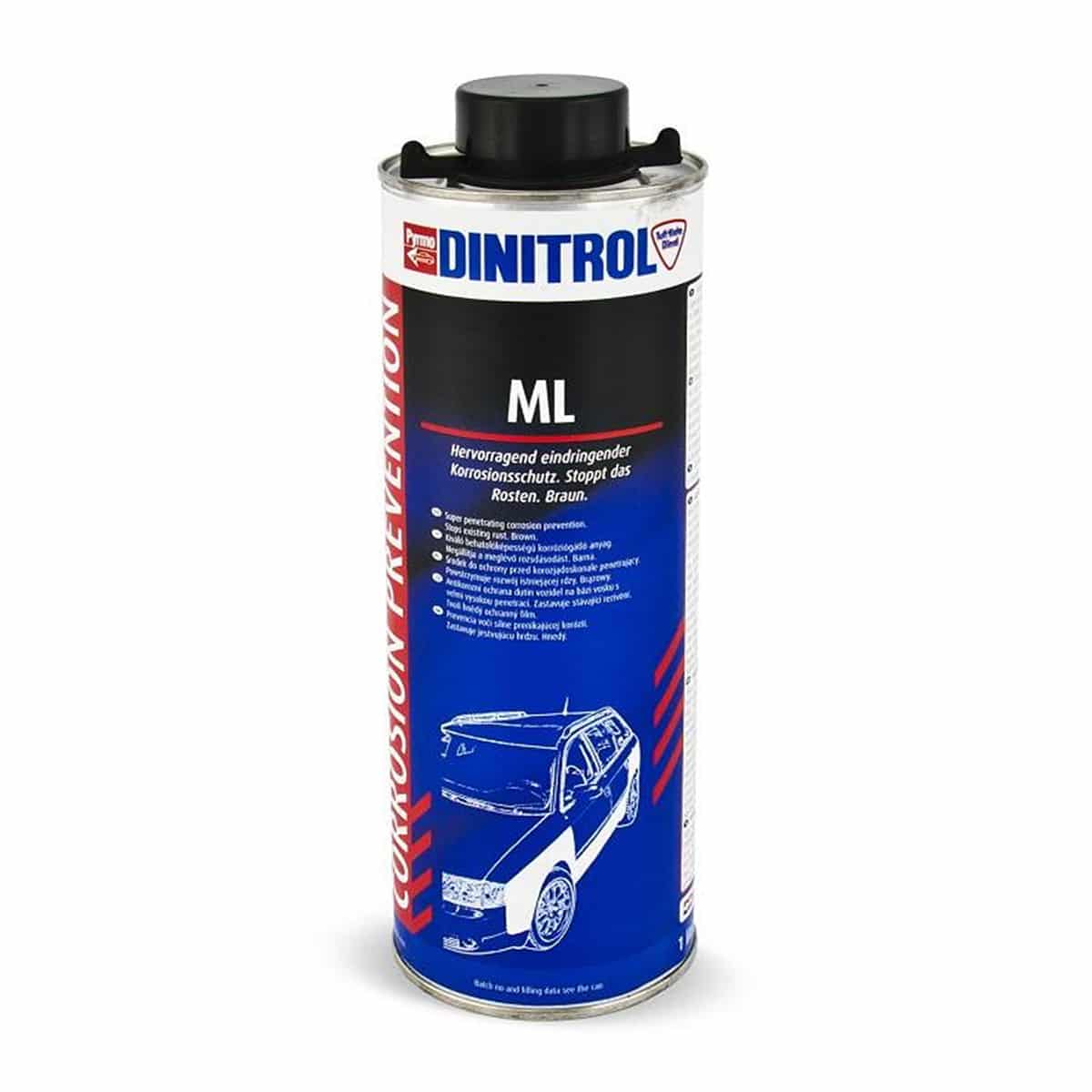 Dinitrol ML on erittäin hyvin tunkeutuva, vettä syrjäyttävä korroosionestoaine. Muodostaa ohuen, ruskean ja rasvamaisen suojaavan kalvon. Sopii erityisen hyvin suljettujen kotelotilojen, saumojen ja ruosteisten pintojen käsittelyyn. Ruosteisille, epäpuhtaille pinnoille primeriksi ennen alustansuojaa. Matala-aromaattinen ohennin.
