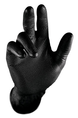 Hanskat on suunniteltu erityisesti korjaamoille. Hanskassa on kestävä koostumus ja patentoitu kaksipuoleinen karhennettu pinta joka antaa hyvän pidon kun käsitellään märkiä, öljyisiä ja- rasvaisia pintoja. 3 x paksummat kuin normaalit nitriilihanskat. Toimivat kosketusnäyttöjen kanssa.100% nitriiliä, ei sisällä silikonia eikä lateksia.