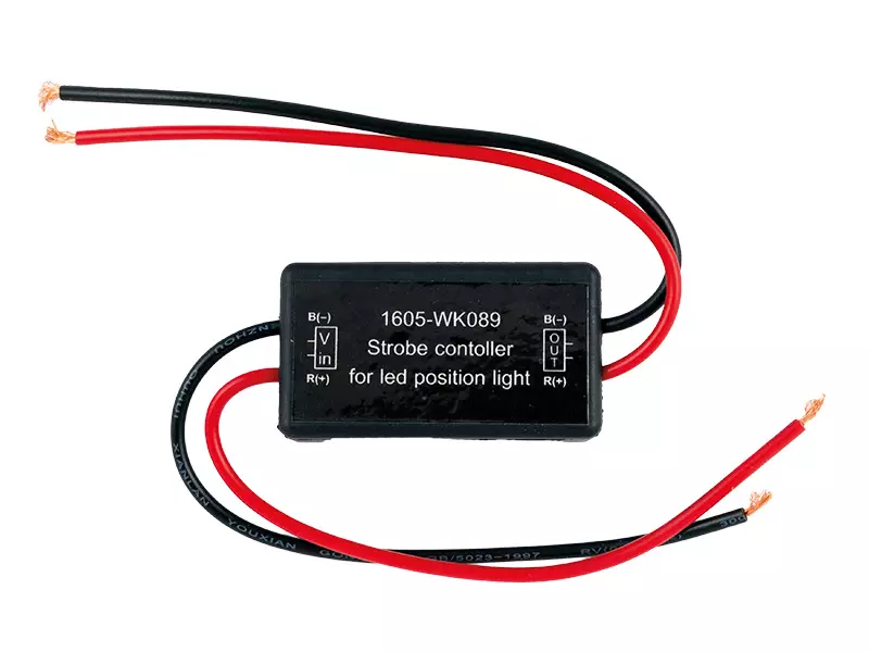 LED-ohjainyksikkö, jolla saa muutettua esim. parkki- tai työvalon välkkymään varoitusvalon ja tasovilkun tavalla. Ohjainyksikön avulla saadaan millainen tahansa ajoneuvoon parhaiten sopiva, max. 35W valo muutettua jatkuvasti vilkkuvaksi valoksi. Ohjainyksikkö asennetaan virtalähteen, sekä valon ja katkaisijan väliin.