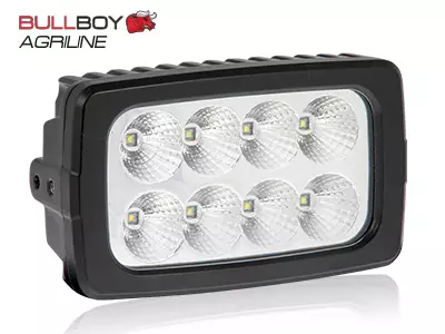 Tehokas sivukiinnitteinen Bullboy LED-työvalo, joka käy esim. Valtran traktoreihin.