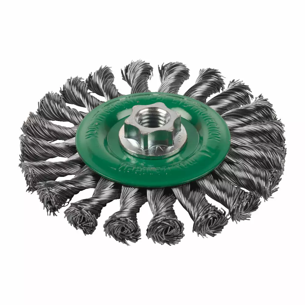 Milwaukee M14 punottu 0,5 mm ruostumaton teräslautasharja on tarkoitettu raskaaseen harjaukseen sekä U- ja V-hitsisaumojen ja putkiliitosten tehokkaaseen puhdistukseen 115–125 mm kulmahiomakoneilla.