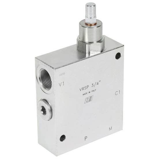 C2-linja kytketään toimilaitteen paluulinjaan, josta palaava öljy johdetaan painelinjaan P. Painerajan tullessa vastaan linjasta C2 palaava öljy johdetaan painelinjan sijasta tankkilinjaan V2. Portista M voidaan mitata paine.