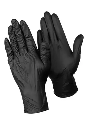 Mustat nitriilinkäsineet. Kestävät ja mukavat käsineet vaativiin olosuhteisiin. Sertifioitu EN 455 ja EN 374. 100 kpl/pakkaus. Materiaali: nitriili.