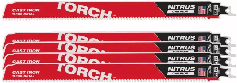 Hampaiden muotoilu takaa nopeat sahausten aloitukset ja siistin sahausjäljen. TORCH NITRUS CARBIDE -purkuterät on suunniteltu kestämään pisimpään ja katkaisemaan nopeimmin valurautaan, SML-putkeen ja muihin paksuihin metalleihin.