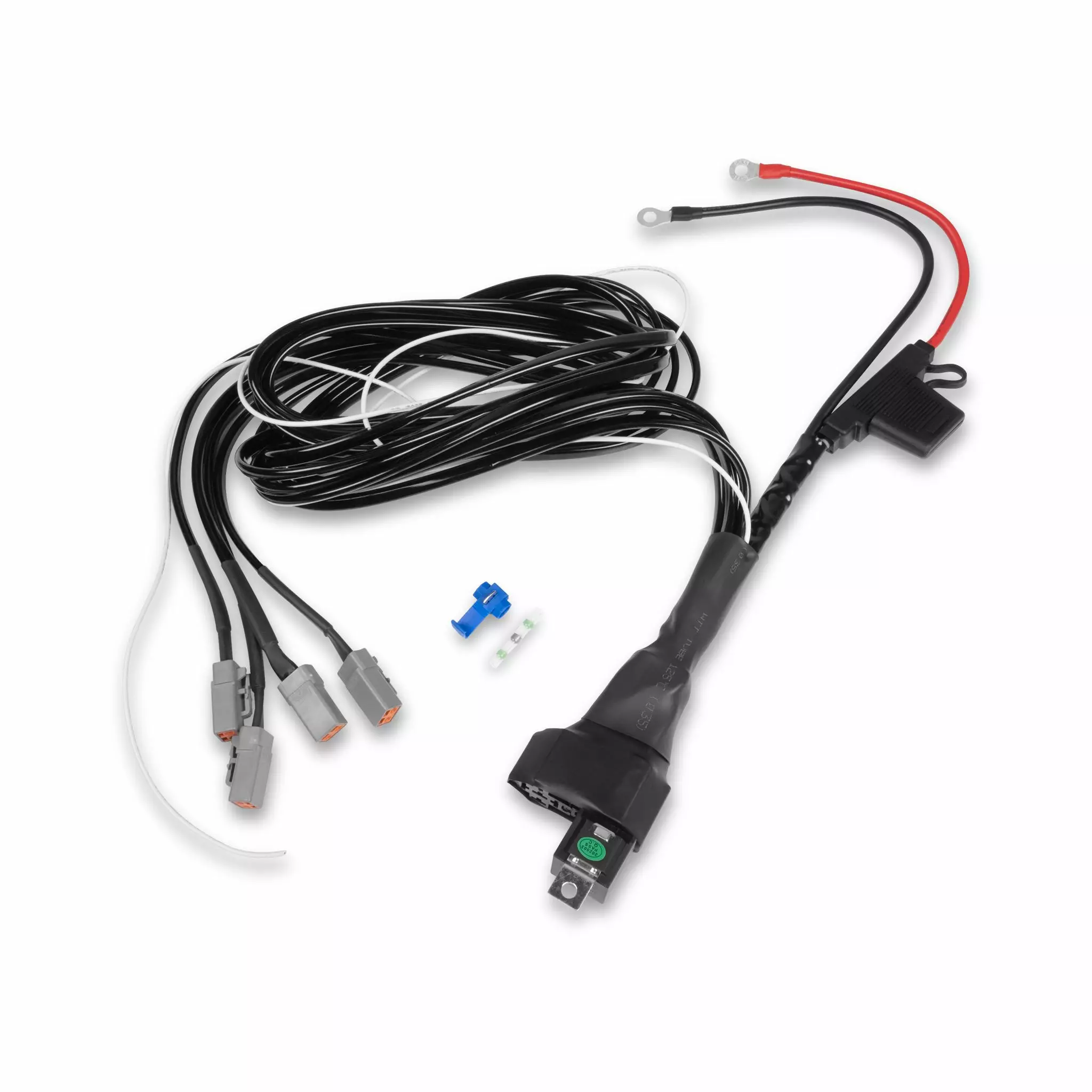 Tekniset tiedot: - Käyttöjännite: 12V - Max. virrankesto: - 4-ulostuloa: 800W (200W / liitin) - Liitin: DTP-2 - Rele: - 4-ulostuloa: 80A - Sulake: - 4-ulostuloa: 70A - Mitat: - Pituus valolta releelle: 225 cm - Pituus akulta releelle: 54 cm - Valkoisen johtimen pituus: 200 cm